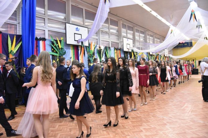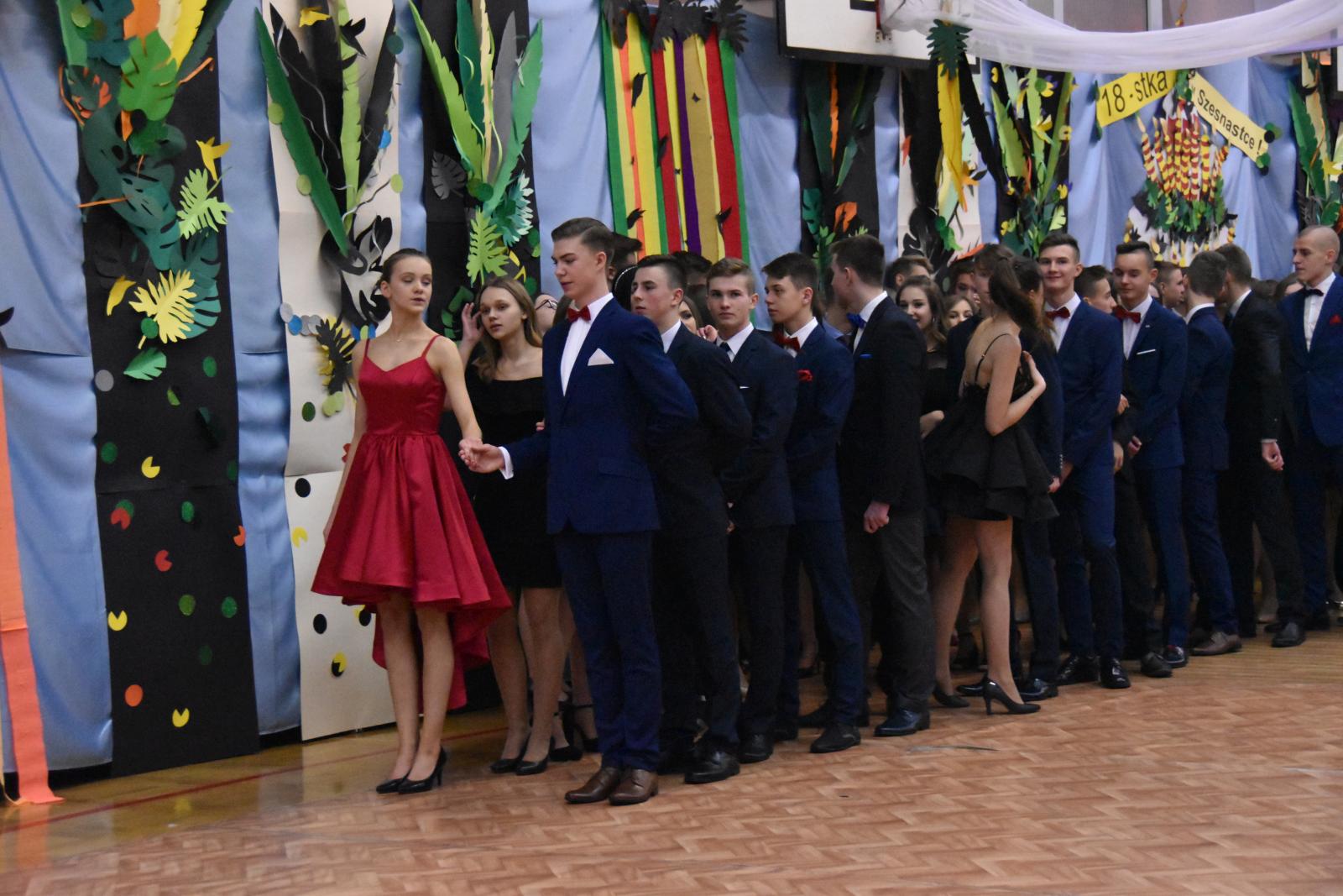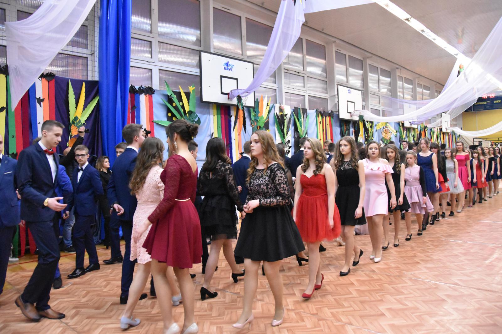 Bal gimnazjalny uczniów Szkoły Podstawowej nr 16 im. Fryderyka Chopina w Lublinie odbył się w szkolnej sali gimnastycznej. Imprezę rozpoczął tradycyjny polonez.