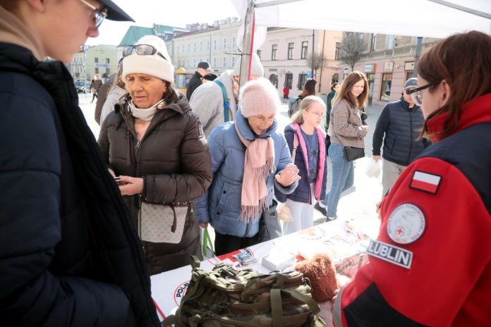 Kwiaty, czerwone pomadki, przypinki i praktyczna wiedza o bezpieczeństwie – tak wyglądało tegoroczne świętowanie Dnia Kobiet zorganizowane przez Lubelski Oddział Okręgowy Polskiego Czerwonego Krzyża. W niedzielę (8 marca) na Placu Łokietka w Lublinie panie mogły nie tylko otrzymać symbolicznego tulipana, ale także dowiedzieć się, jak zadbać o własne zdrowie i bezpieczeństwo w sytuacjach kryzysowych.