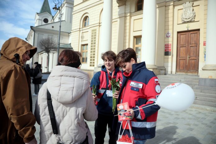 Kwiaty, czerwone pomadki, przypinki i praktyczna wiedza o bezpieczeństwie – tak wyglądało tegoroczne świętowanie Dnia Kobiet zorganizowane przez Lubelski Oddział Okręgowy Polskiego Czerwonego Krzyża. W niedzielę (8 marca) na Placu Łokietka w Lublinie panie mogły nie tylko otrzymać symbolicznego tulipana, ale także dowiedzieć się, jak zadbać o własne zdrowie i bezpieczeństwo w sytuacjach kryzysowych.