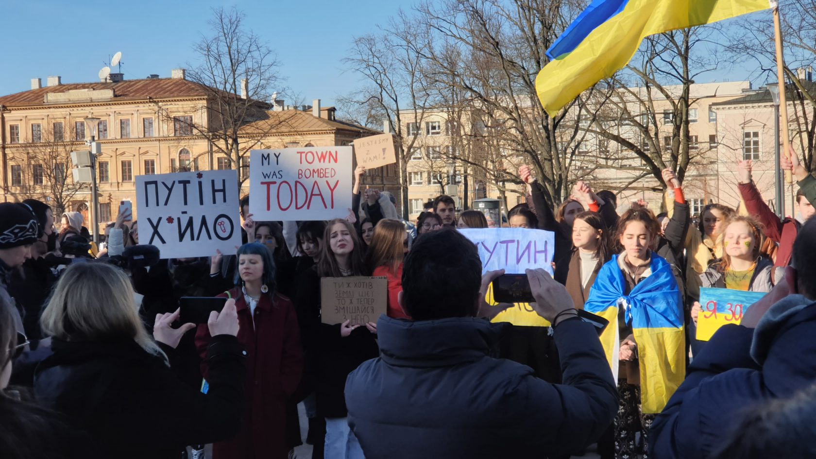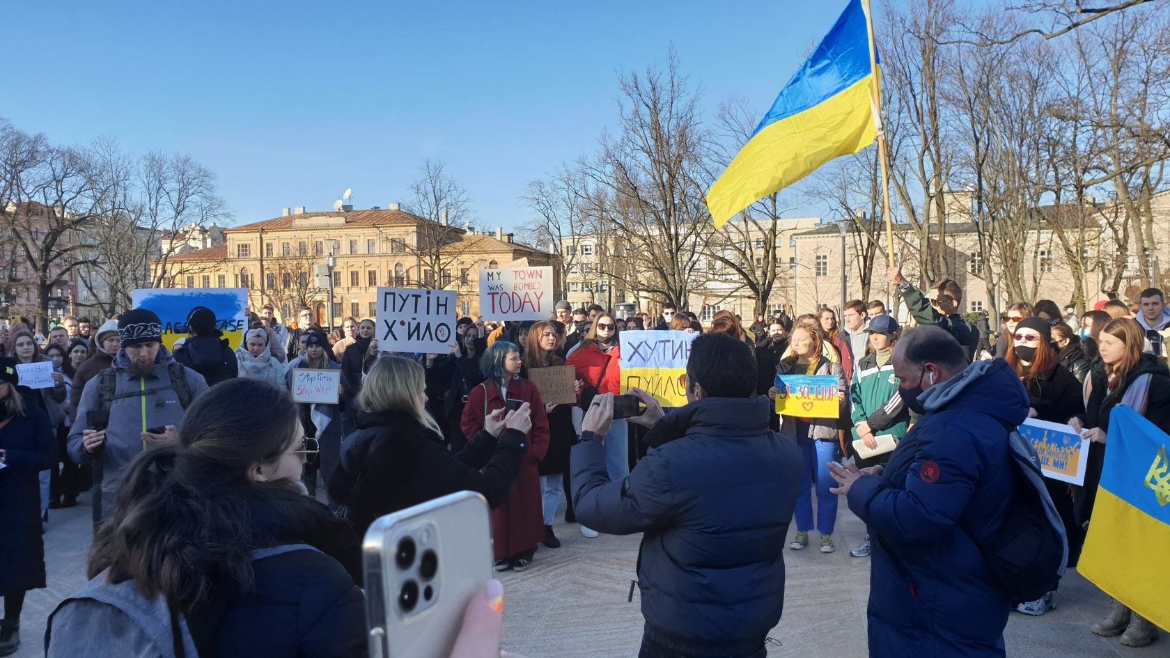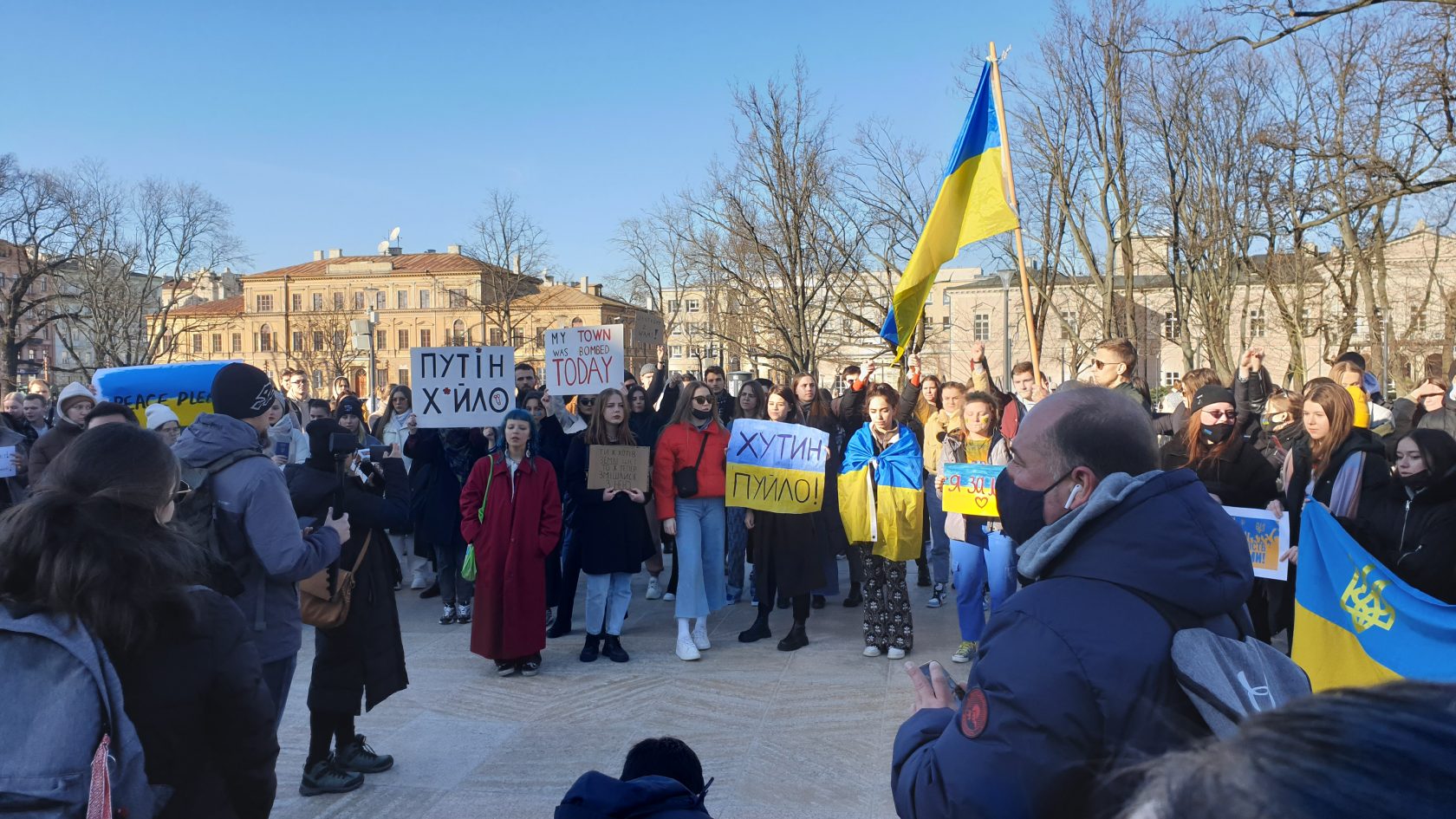 Dziś wszyscy jesteśmy Ukrainą – mówi Kasia, studentka z Ukrainy mieszkająca w Lublinie. Na placu Litewskim odbyła się akcja solidarności z zaatakowaną przez Rosję Ukrainą.