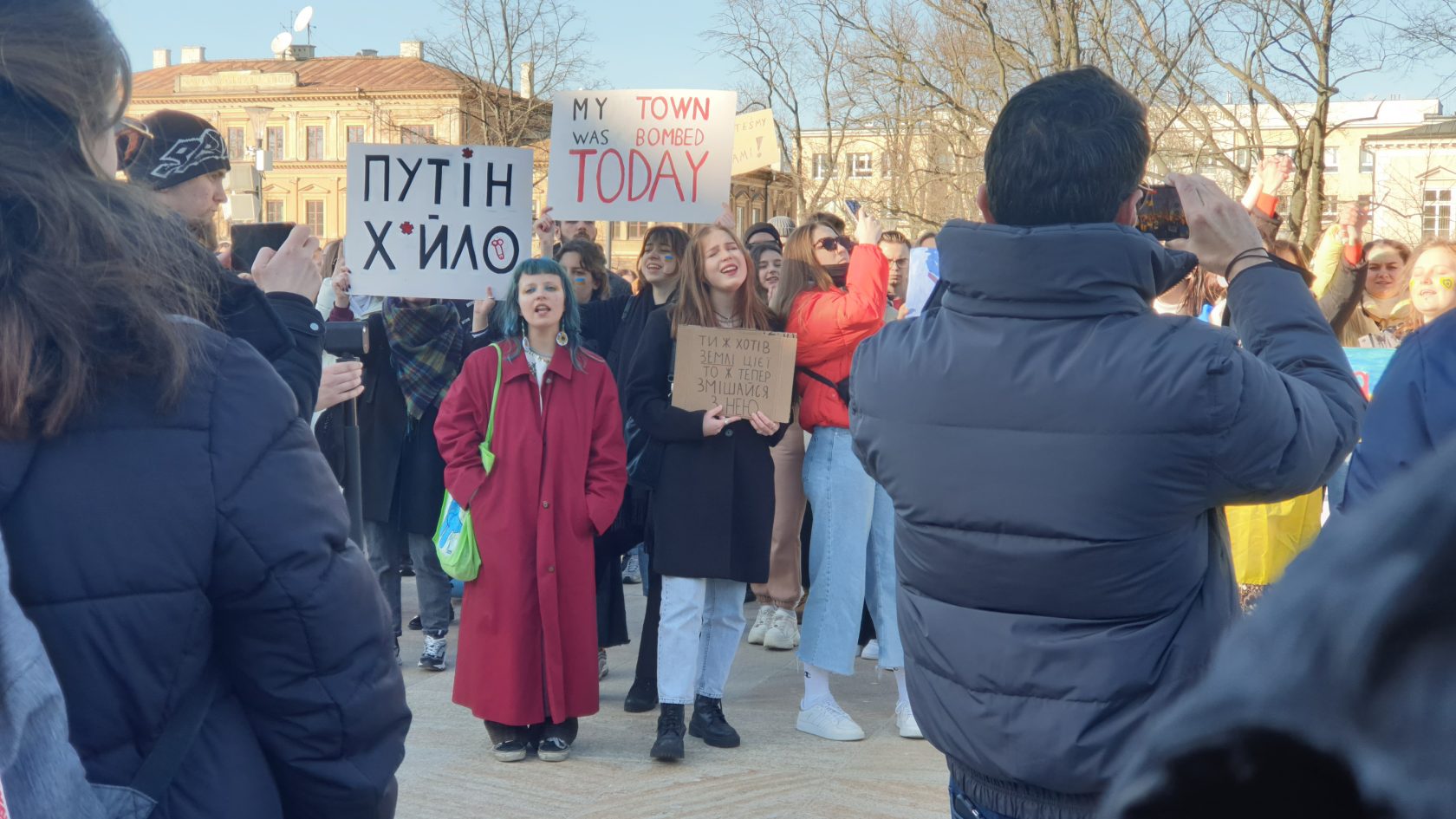 – Jesteśmy tu, żeby dzisiaj wspierać swój kraj, bo jesteśmy za pokojem na całym świecie. Moja rodzina została na Ukrainie, boję się o nich. Ale chcemy, żeby wszyscy zachowali spokój, bo tylko na to czeka nasz wróg, żebyśmy spanikowali, a musimy wspierać swoich i walczyć o swoją niepodległość, bo jesteśmy wolni – przekonuje Marina, uczestniczka wiecu.