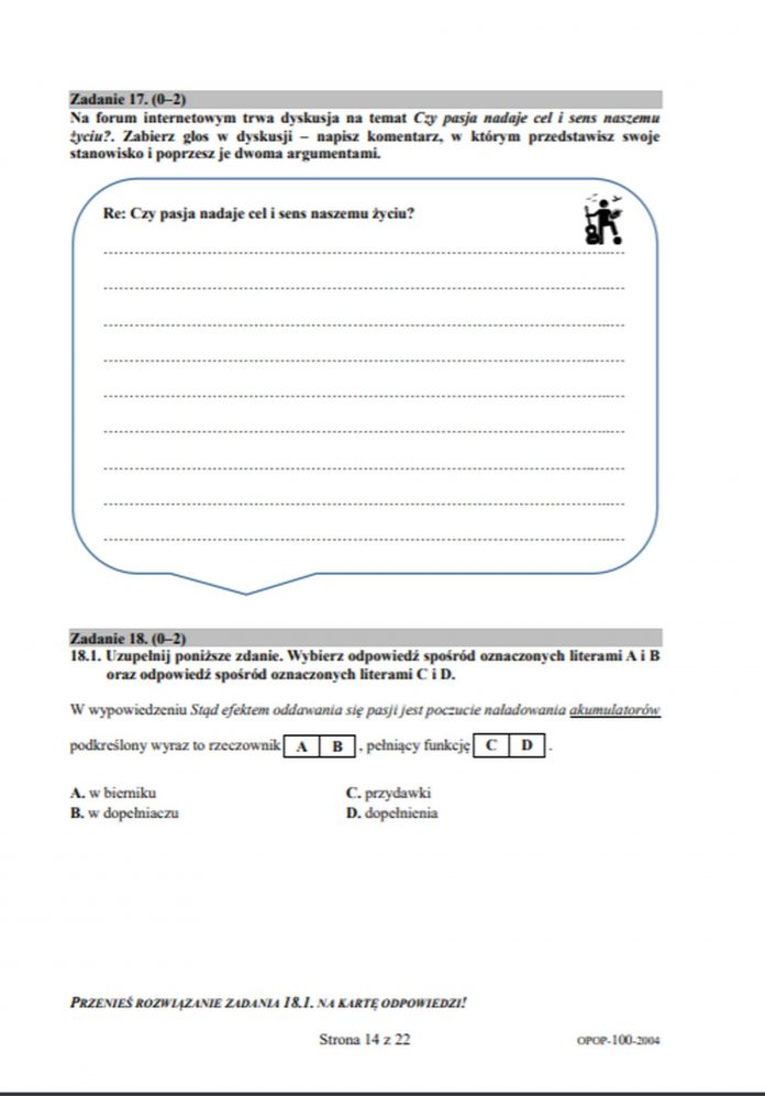 We wtorek (16 czerwca) ósmoklasiści przystąpili do egzaminu z języka polskiego. Centralna Komisja Egzaminacyjna opublikowała arkusz.