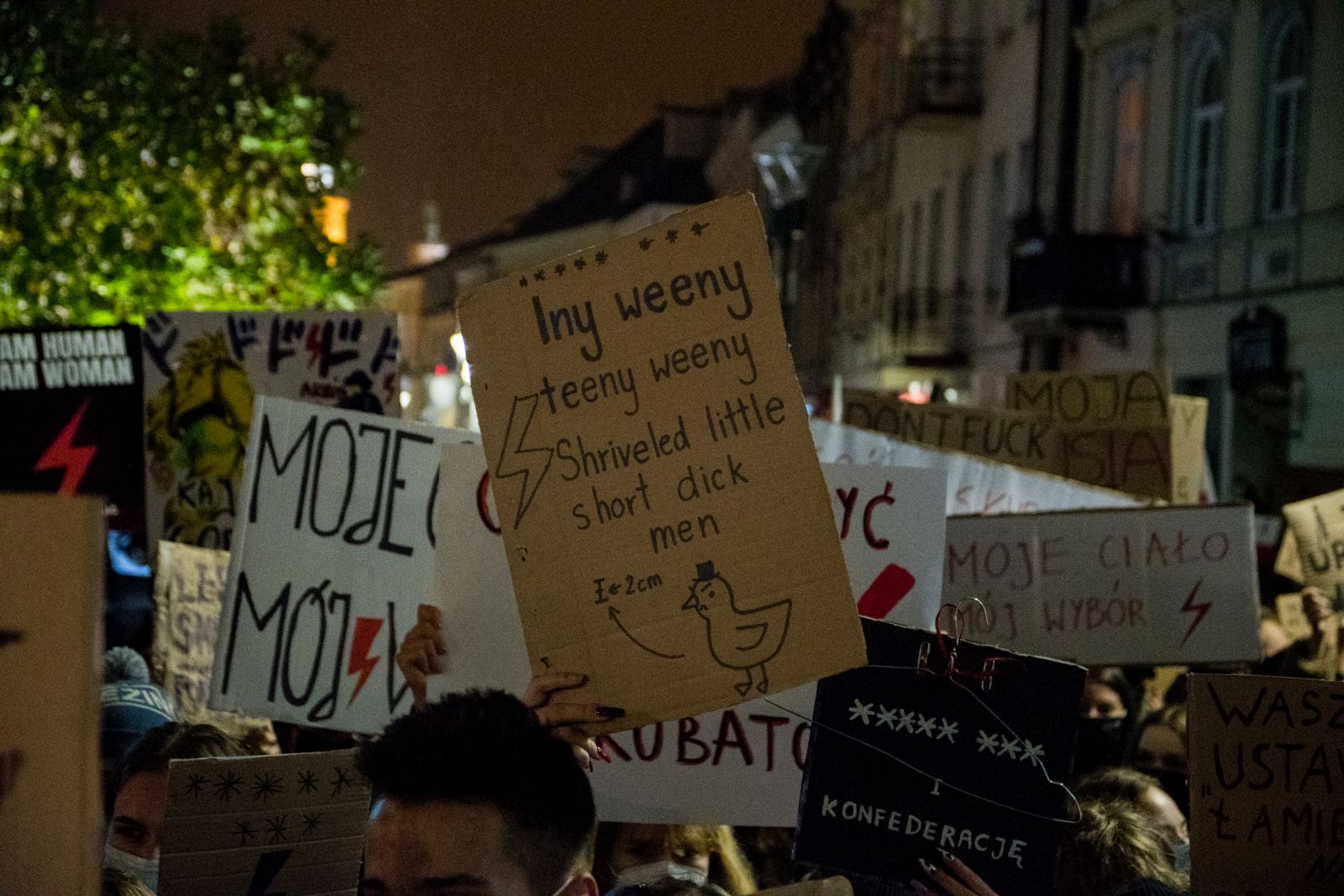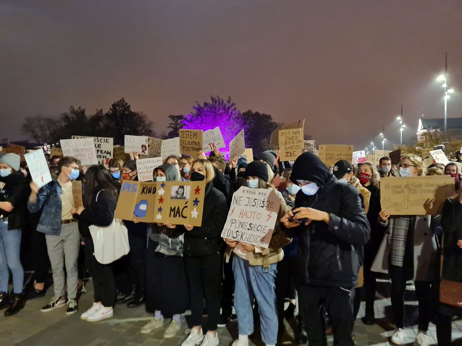 Protestujące kobiety mają inne zdanie. – Nie widziałam żadnych ataków na kościoły w Lublinie. W niedzielę na bramie kurii powiesiliśmy nasze plakaty i wieszaki. Faktycznie ktoś sprayem napisał „Aborcja”, ale nie jest tak, że naszym celem jest przyjść przed kościół, żeby go zniszczyć. Przychodzimy tutaj, żeby dać wyraz temu, że nie zgadzamy się, aby kościół wchodził w układy z rządem i wspólnie decydowali o naszym życiu. Wiara to nie jest przymus, który można ustawą na każdą z nas i na każdego z nas nałożyć, bo to już nie dotyczy tylko kobiet, ale i całego społeczeństwa. Wiem, że pod kościołem będzie czekała na nas grupa obrońców, ale mam nadzieję, że jak ostatnio uda się spokojnie przejść – odpowiedziała nam na pytanie o kościoły Laura, uczestniczka marszu.