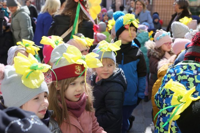 Quiz wiosenny, zabawy muzyczne i barwne animacje – tradycyjnie 21 marca dzieci powitały wiosnę przed lubelskim Ratuszem.