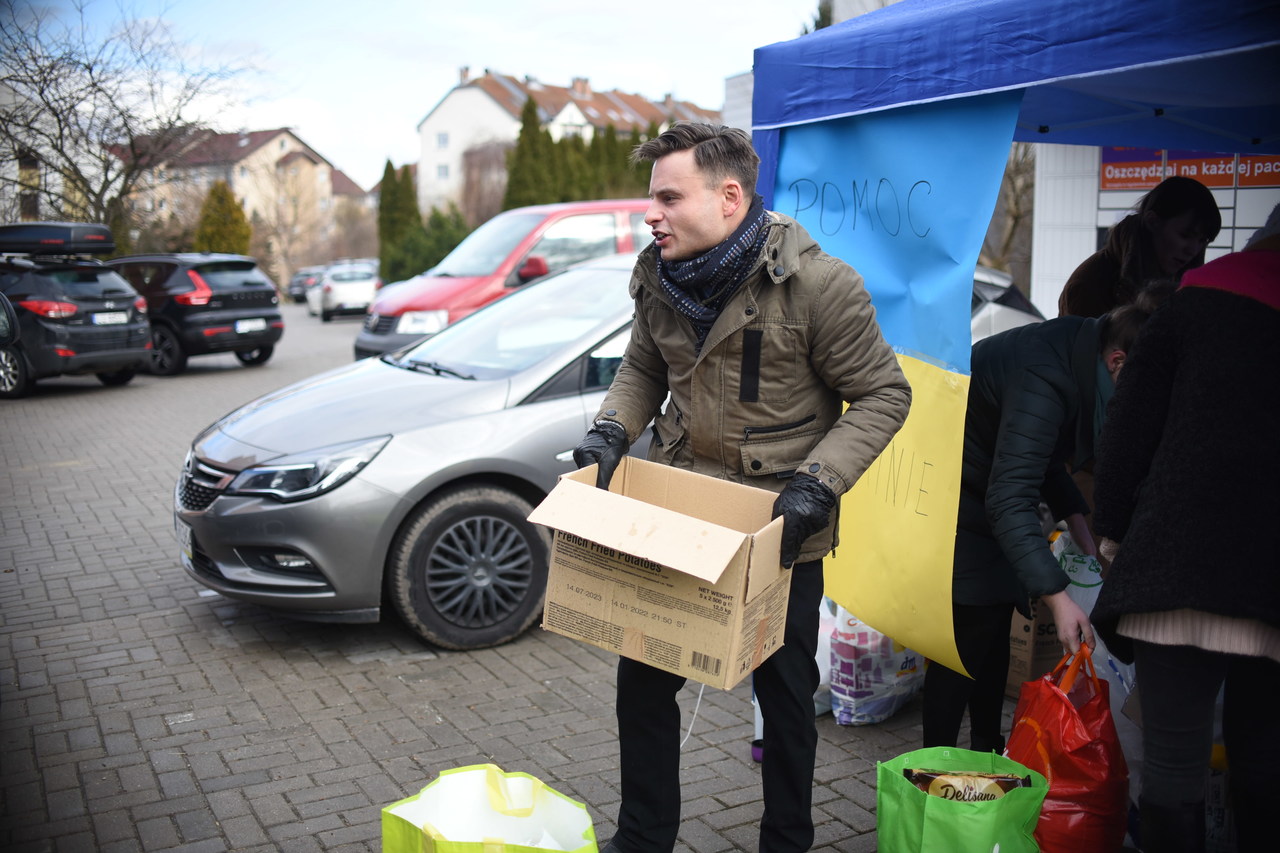 – Razem z kolegami z Warszawy podwozimy pod granicę samochodami potrzebne dary. Obecnie bardzo potrzebne są leki, bandaże, jedzenie oraz chemia dla dzieci i dorosłych – mówi Andriej. – To jest dla mnie bardzo trudne. To trudne dla wszystkich. Wróg atakuje. Wszyscy widzimy, co się dzieje – mówi łamiącym się głosem.