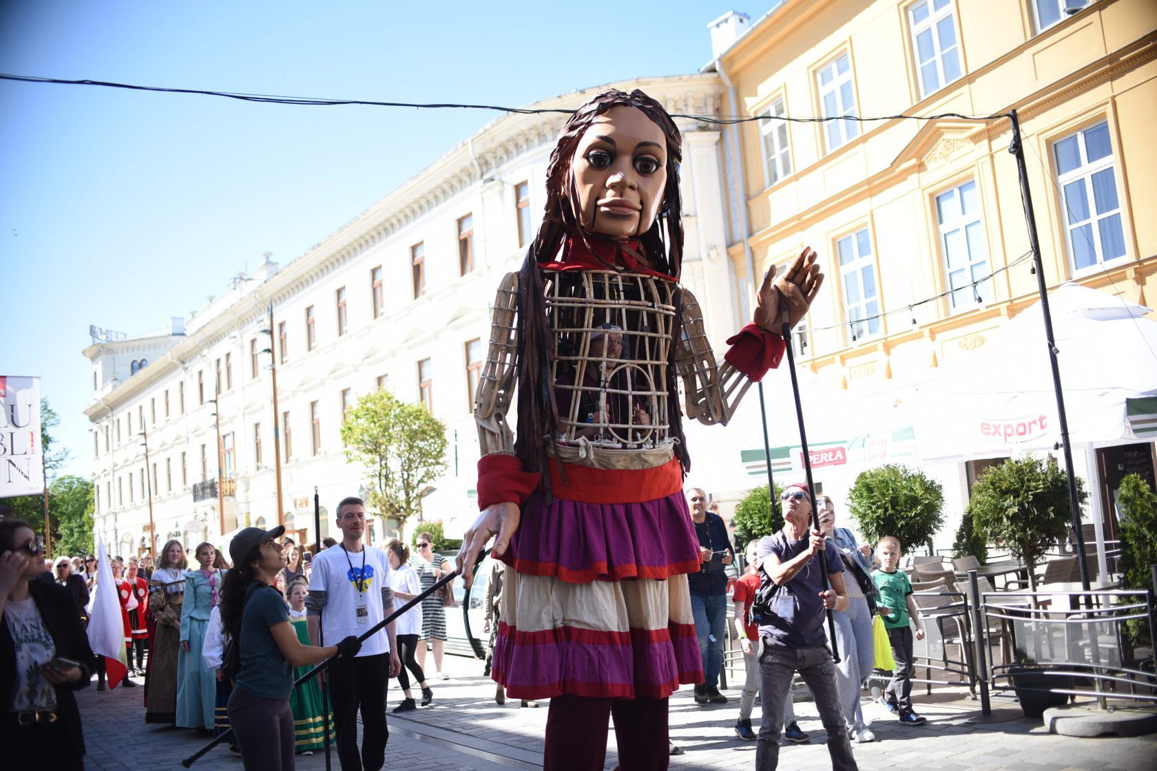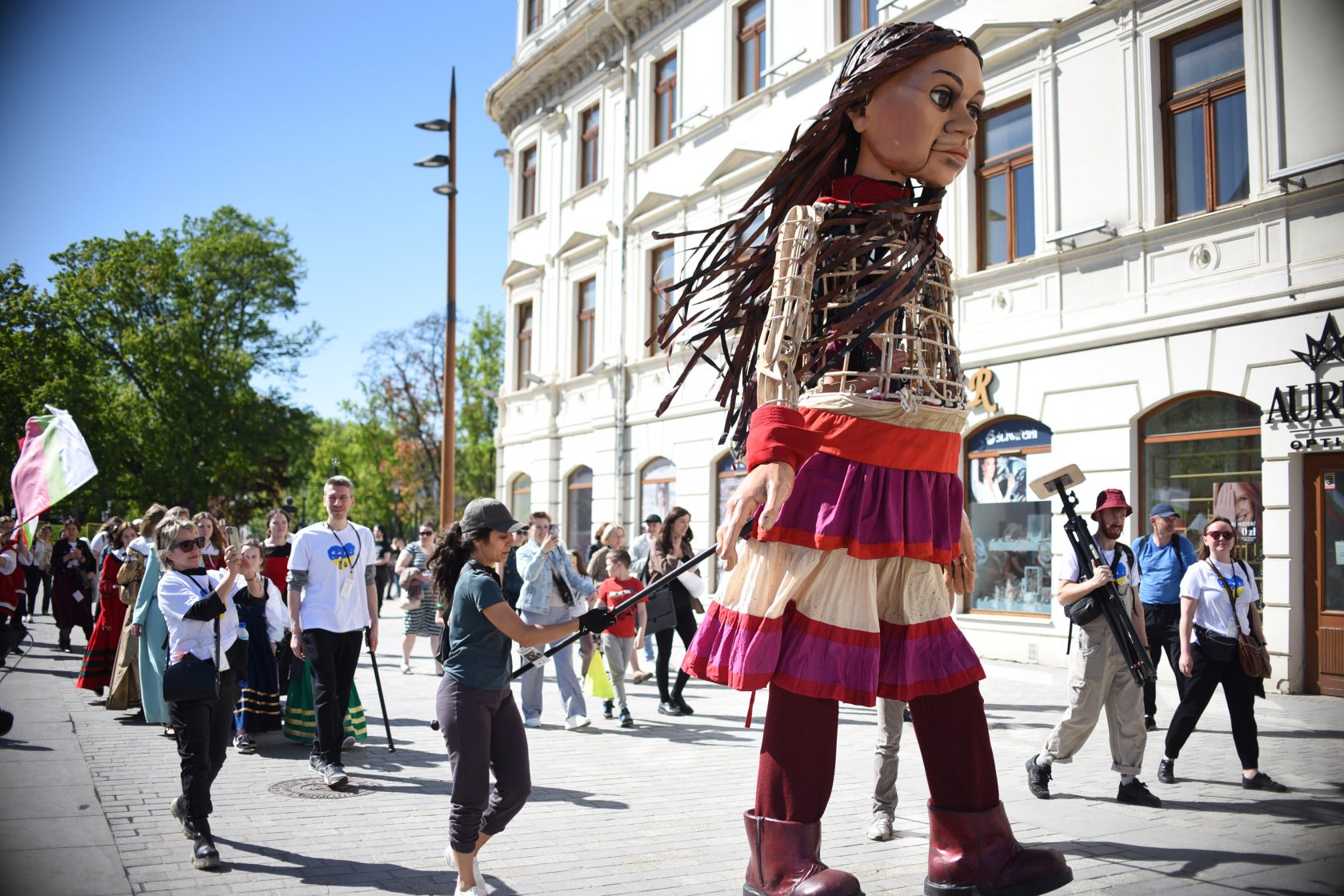 We wtorek (10 maja) do Lublina przyjechała Mała Amal, która wybrała się na spacer po naszym mieście. Wzbudzała ogromne zainteresowanie mieszkańców, zwłaszcza tych najmłodszych. Gigantyczna, trzyipółmetrowa marionetka przedstawia małą syryjską dziewczynkę.