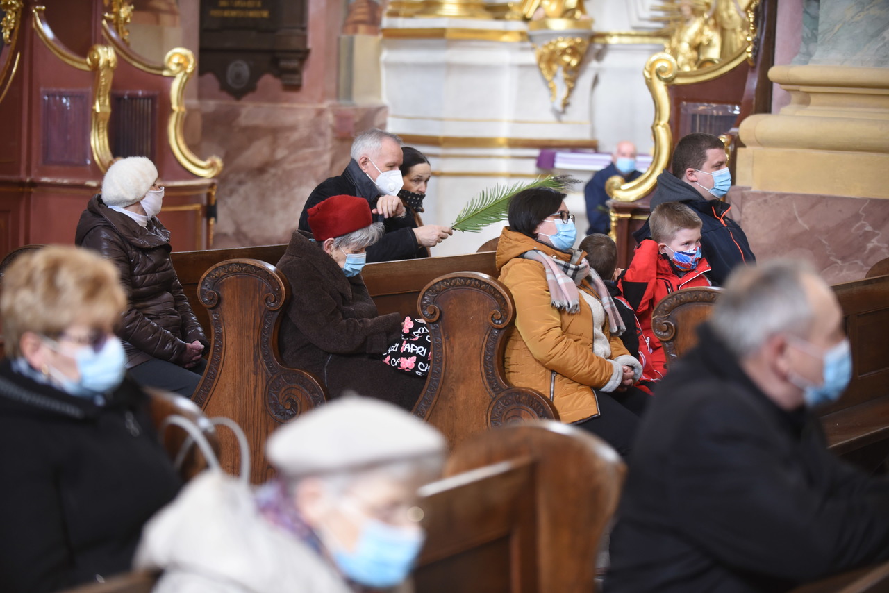 Najpierw liczenie wiernych, potem msza święta przy limicie wiernych – tak wyglądała Niedziela Palmowa w archikatedrze lubelskiej. We mszy świętej o godzinie 11.30 wzięło udział 60 osób wewnątrz kościoła i kilkadziesiąt przed świątynią. Mszę z uroczystą procesją odprawił ksiądz arcybiskup Stanisław Budzik, metropolita lubelski.