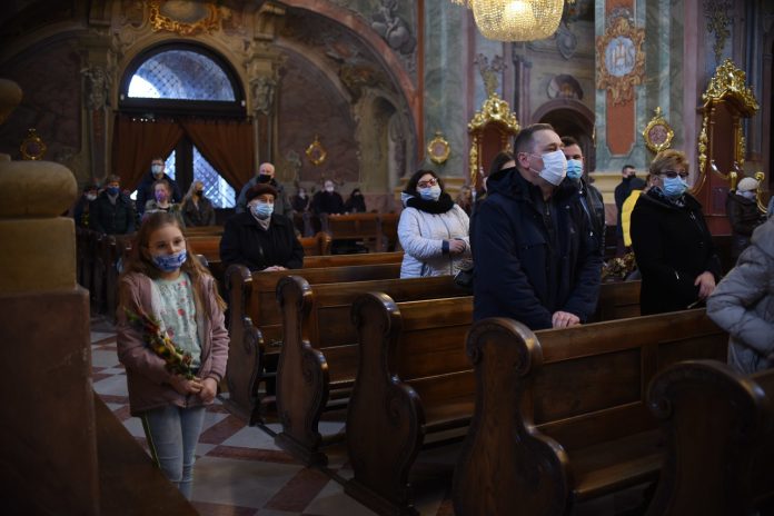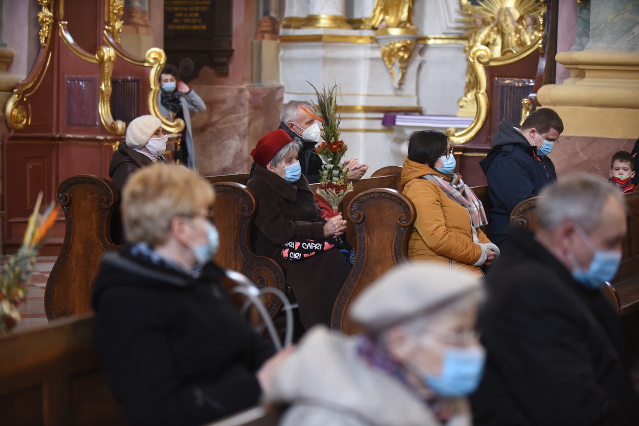 Najpierw liczenie wiernych, potem msza święta przy limicie wiernych – tak wyglądała Niedziela Palmowa w archikatedrze lubelskiej. We mszy świętej o godzinie 11.30 wzięło udział 60 osób wewnątrz kościoła i kilkadziesiąt przed świątynią. Mszę z uroczystą procesją odprawił ksiądz arcybiskup Stanisław Budzik, metropolita lubelski.