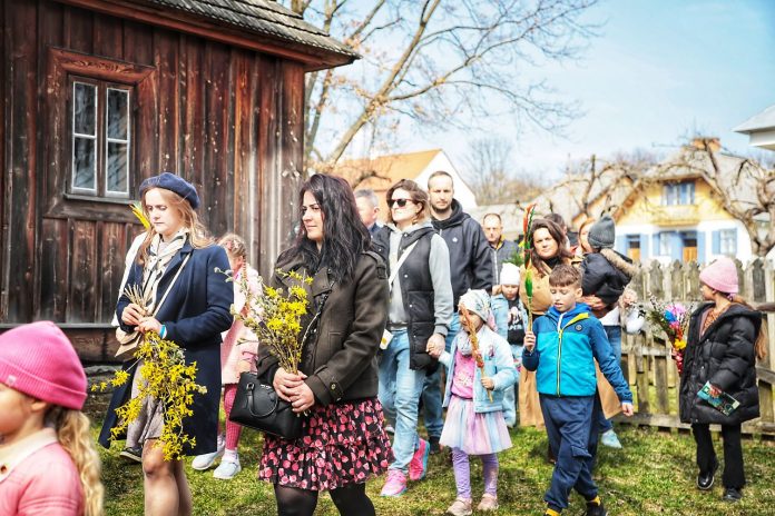 Msza św. z procesją, warsztaty, śpiewy i wielkanocne opowieści – tak wyglądała Niedziela Palmowa w Muzeum Wsi Lubelskiej.