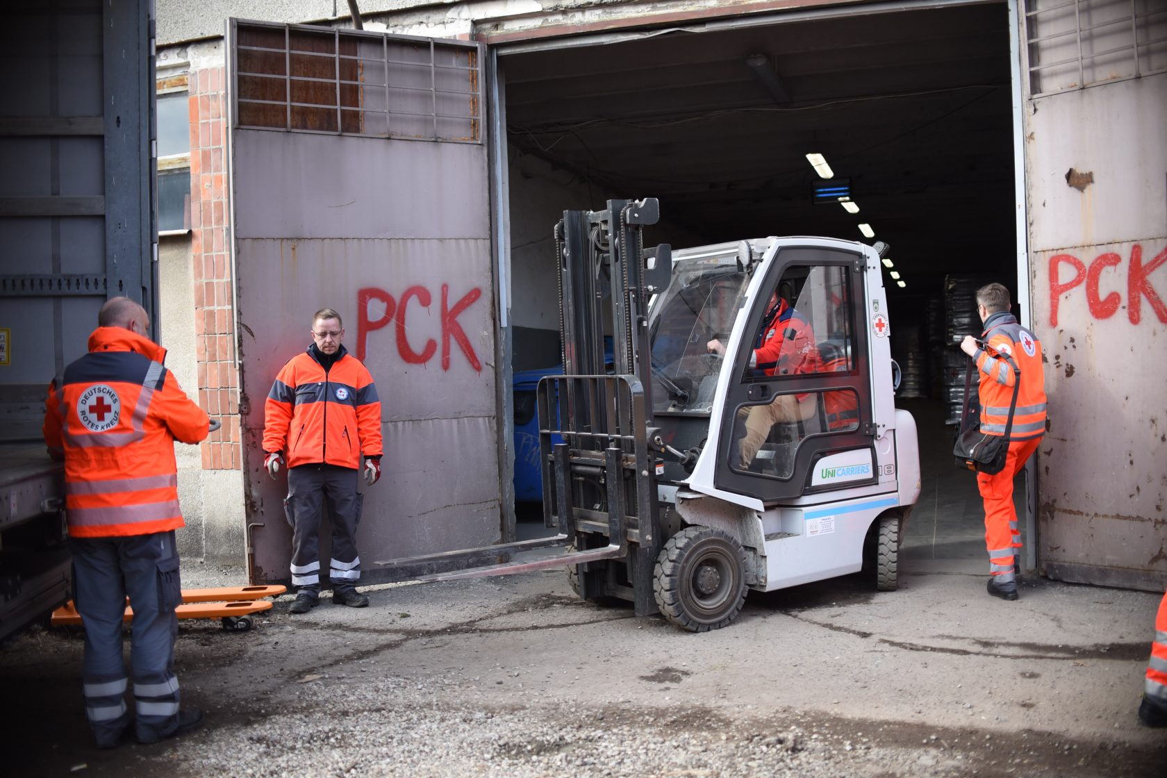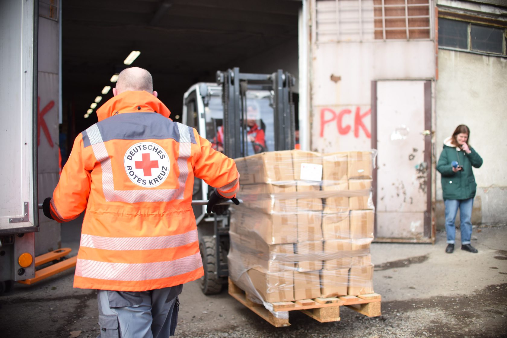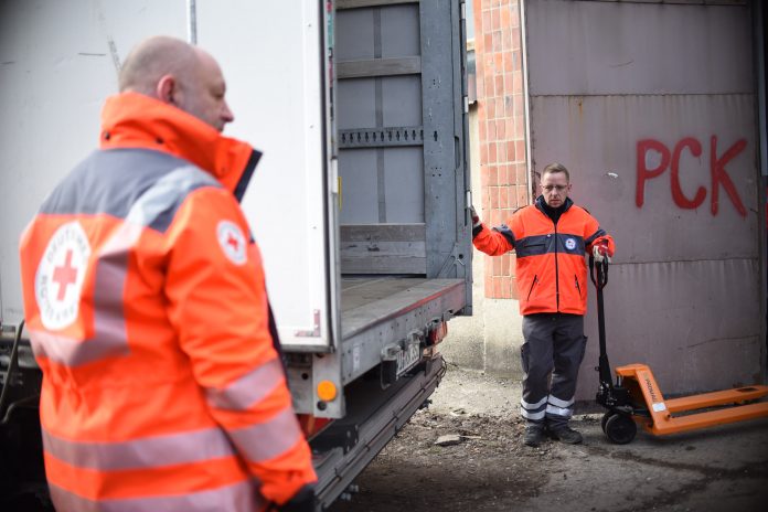 W czwartek (3 marca) rozładowane zostało 5 tirów z pomocą humanitarną otrzymaną z Niemieckiego Czerwonego Krzyża. Wszystkie otrzymane materiały zostaną wkrótce rozdystrybuowane wśród uchodźców po polskiej stronie granicy, przede wszystkim w nowoutworzonych tymczasowych punktach pobytu. W kolejnych dniach, z Niemiec przyjadą kolejne dary.