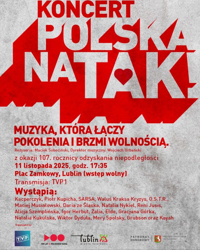 – Serdecznie zapraszam Państwa na wyjątkowy koncert w ramach ogólnopolskiej akcji „Polska na TAK!”. Wydarzenie będzie okazją, by pokazać, że razem potrafimy świętować to, co nas łączy, czyli naszą kulturę, wspólnotę i miłość do Ojczyzny. Niech to będzie czas muzyki, uśmiechu i dumy z bycia Polką i Polakiem. Spotkajmy się 11 listopada na Placu Zamkowym – mówi Krzysztof Żuk, prezydent Lublina.