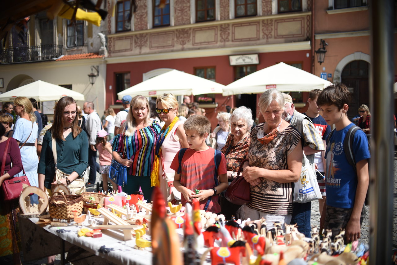 W sobotę (21 sierpnia) mieszkańcy tłumnie odwiedzali stragany Jarmarku Jagiellońskiego. Największym powodzeniem cieszyły się drewniane, ludowe zabawki, które są nieodłącznym elementem jarmarku. Nie mogło zabraknąć również kury jarmarkowej, którą można spotkać na placu Po Farze.