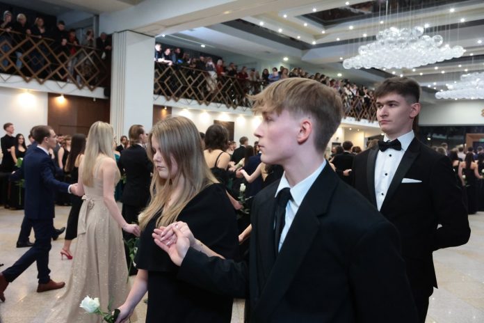 W sobotę (11 stycznia) na balu studniówkowym bawią się uczniowie Zespołu Szkół nr 5 im. Jana Pawła II przy ul. Elsnera w Lublinie. Tradycyjnie zaczęli bal od poloneza.
