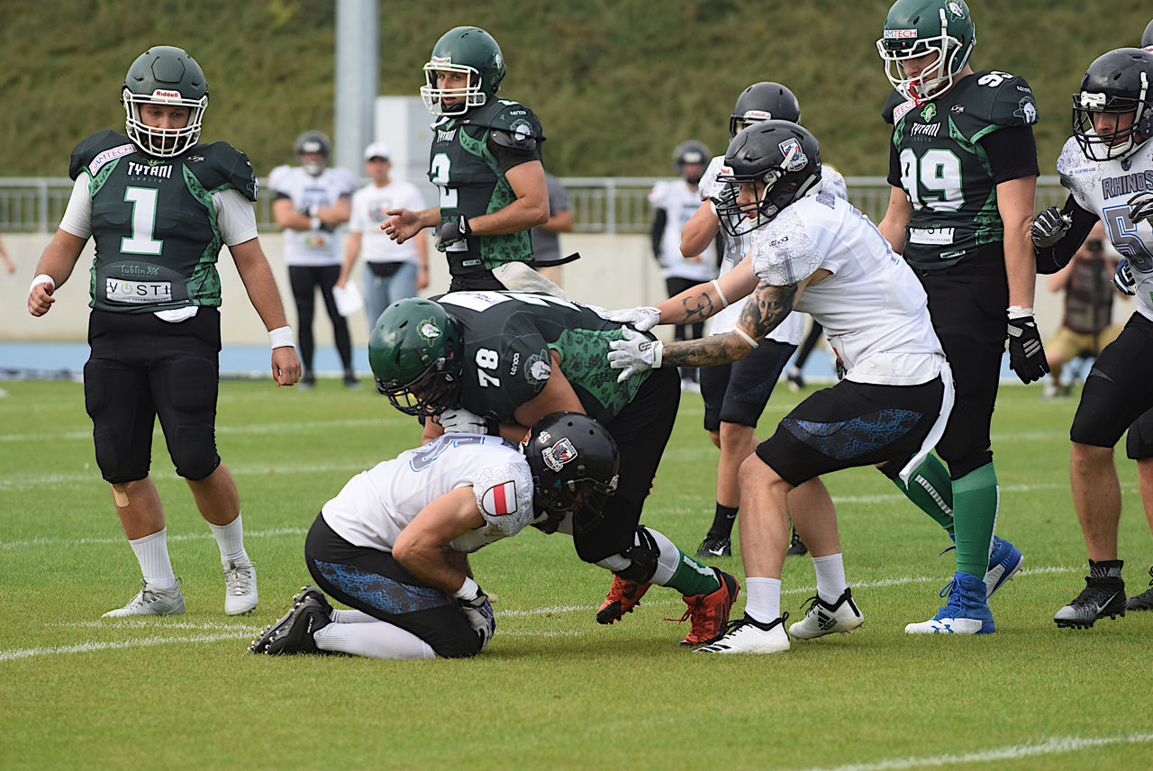 W sobotę (29 sierpnia) na stadionie lekkoatletycznym drużyna futbolu amerykańskiego Tytani Lublin zmierzyła się z Rhinos Wyszków. Nasi zawodnicy wygrali spotkanie 20 do 14. Mecz odbył się w ramach Turnieju Futbolu Amerykańskiego, podczas którego wystąpiły drużyny: Tytani Lublin, Rhinos Wyszków i Warsaw Eagles.