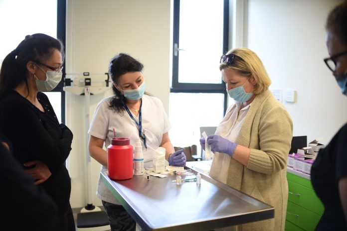 W Centrum Symulacji Medycznej Uniwersytetu Medycznego w Lublinie trwają szkolenia przedstawicieli zawodów medycznych. Uczą się oni, jak prawidłowo wykonywać szczepienia, na co zwrócić szczególną uwagę i jak podawać daną szczepionkę.