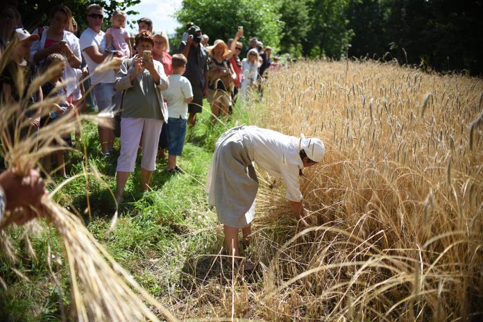 W niedzielę (24 lipca) w Muzeum Wsi Lubelskiej mogliśmy zobaczyć, jak dawniej wyglądało żniwowanie. Żniwiarze i podbieraczki w schludnych, lnianych strojach, tak jak to miało miejsce na przedwojennej wsi, wkroczyli na pole obsiane żytem tuż przy wiatraku z Zygmuntowa.