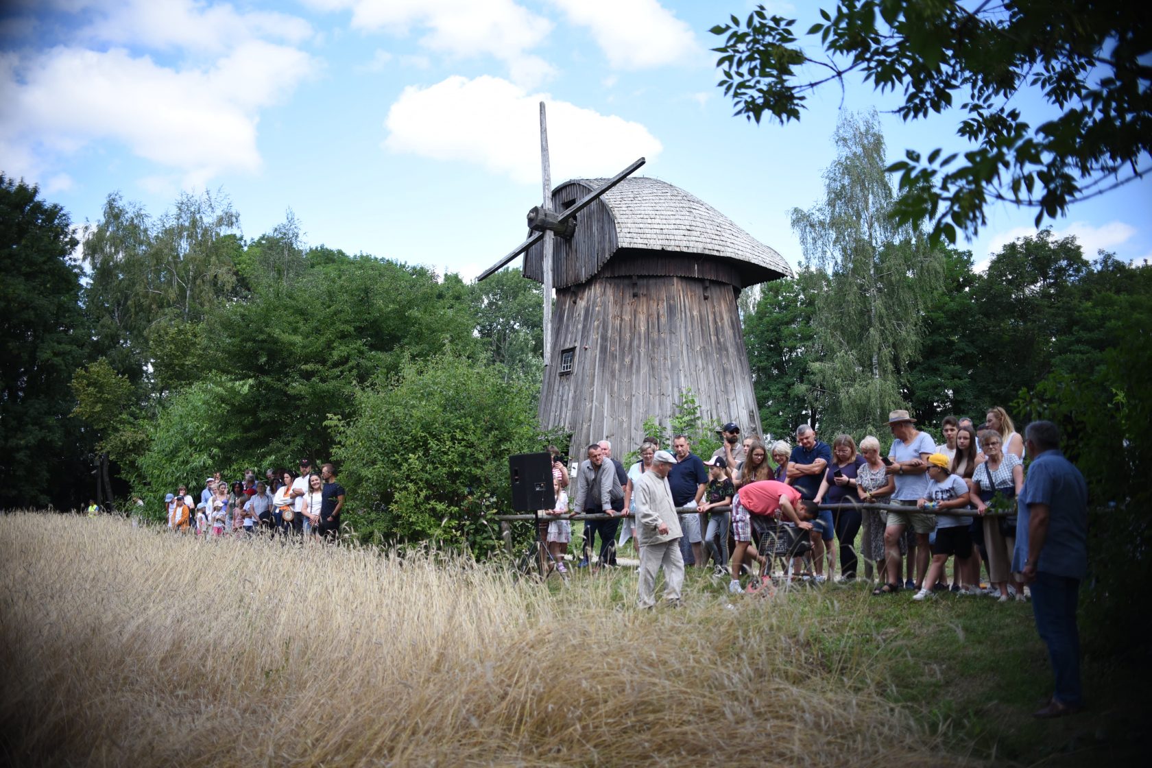 W niedzielę (24 lipca) w Muzeum Wsi Lubelskiej mogliśmy zobaczyć, jak dawniej wyglądało żniwowanie. Żniwiarze i podbieraczki w schludnych, lnianych strojach, tak jak to miało miejsce na przedwojennej wsi, wkroczyli na pole obsiane żytem tuż przy wiatraku z Zygmuntowa.